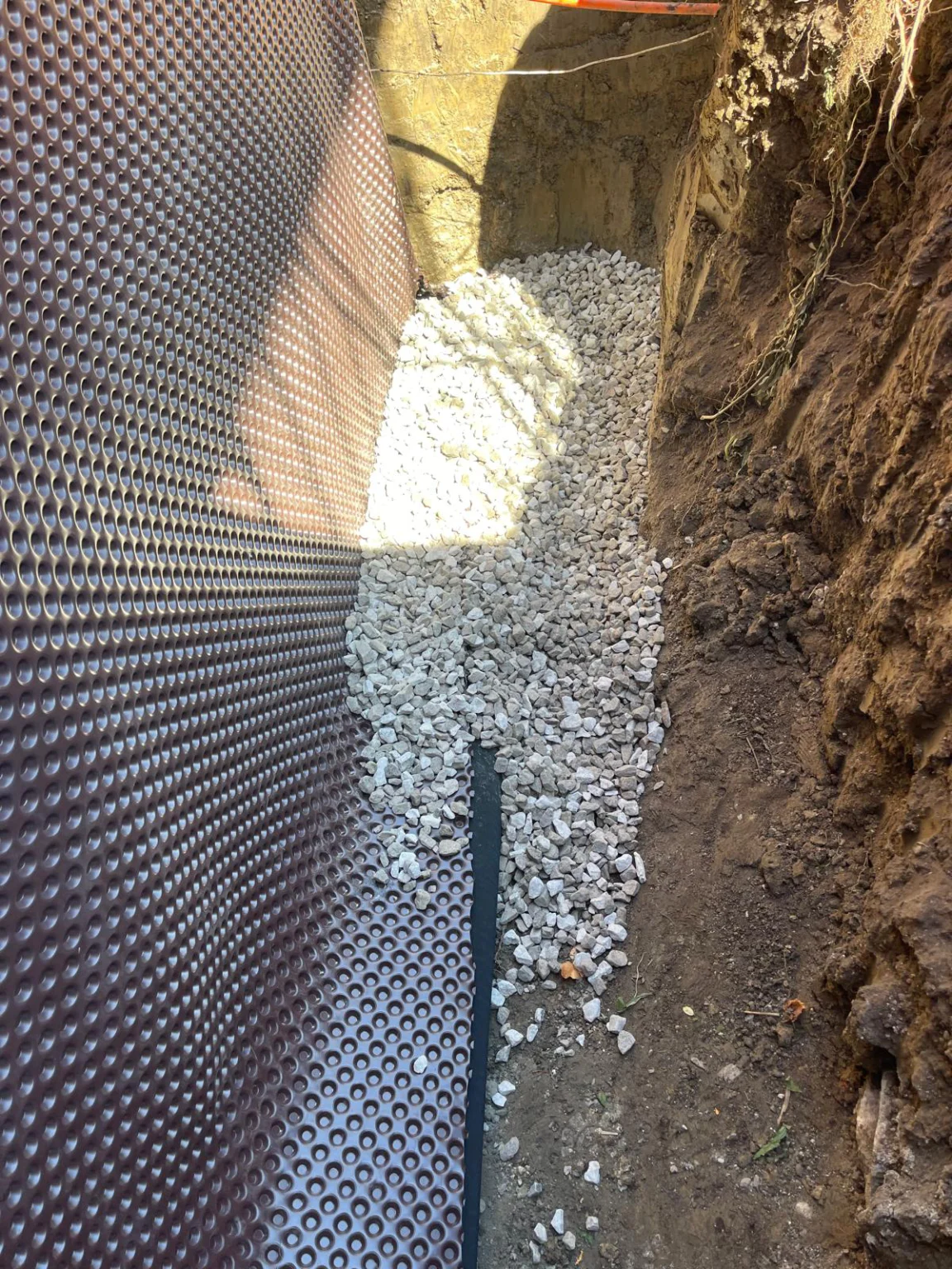 - Exterior basement waterproofing – Long-term protection by addressing the problem at its source, including excavation, membrane installation, and improved drainage.