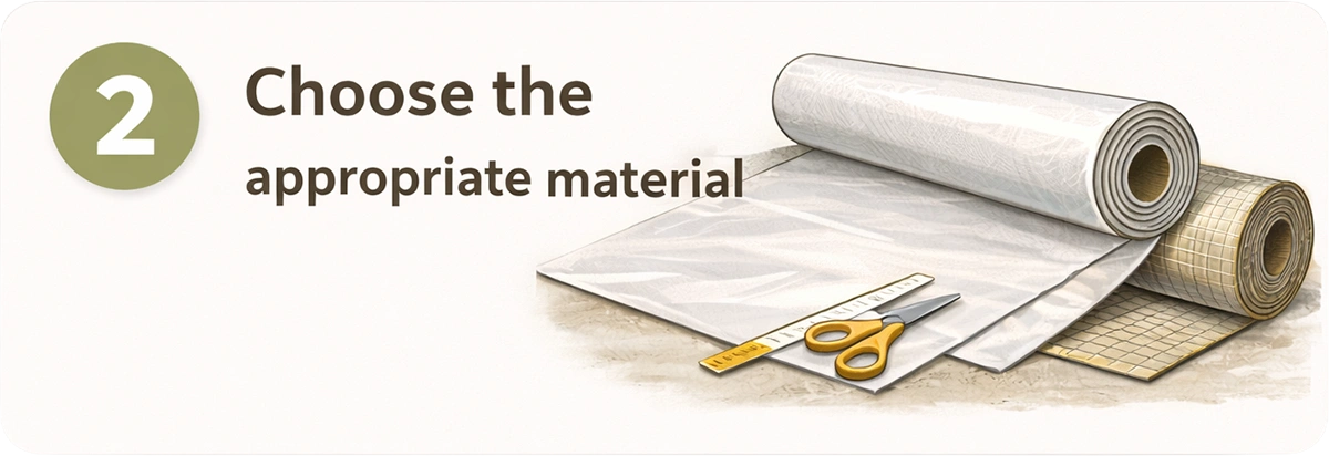 Most basements use polyethylene sheeting (6–10 mil), though reinforced options may be recommended for humid environments.
